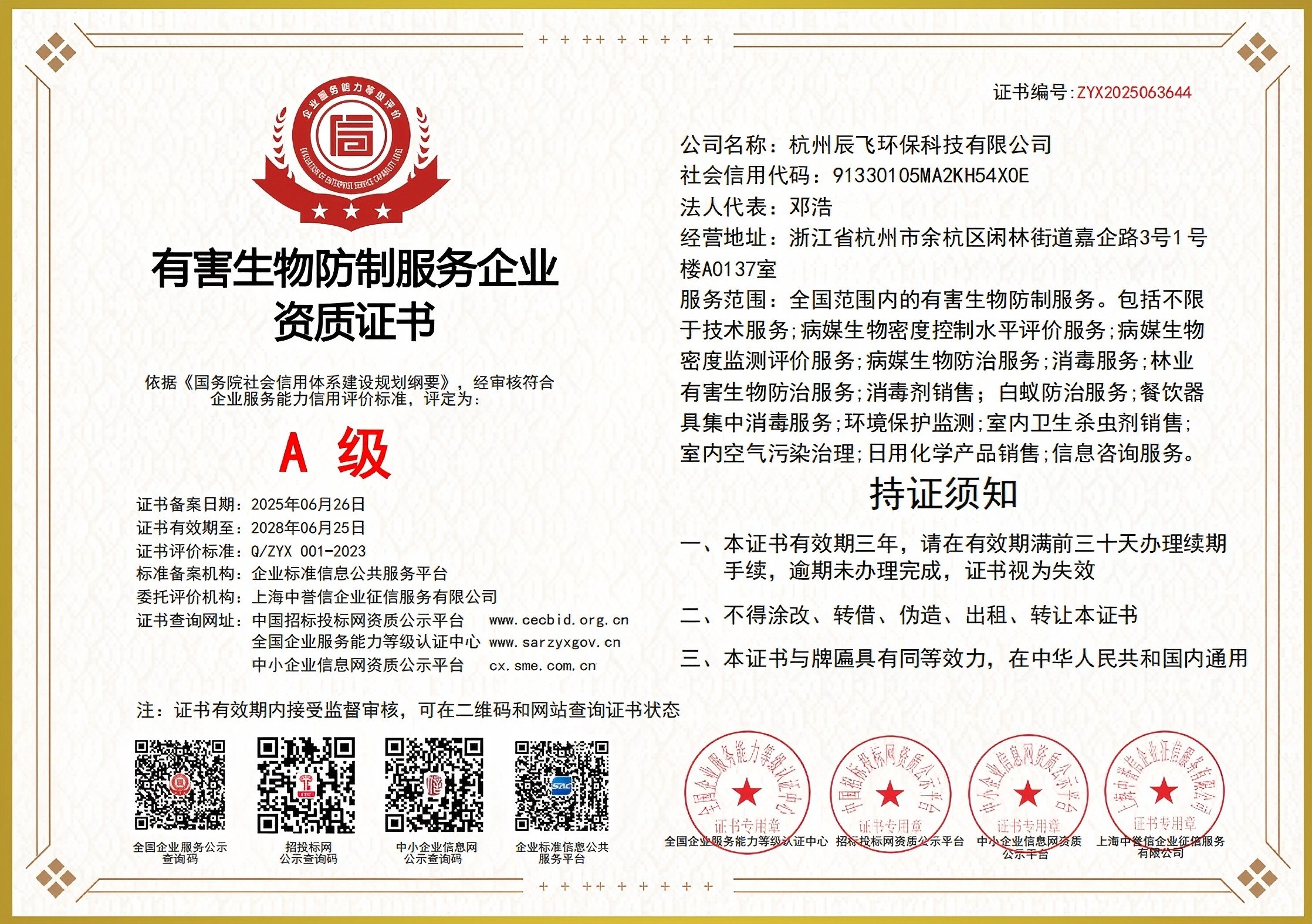 有害生物防制資質(zhì)A級(2025-2028)